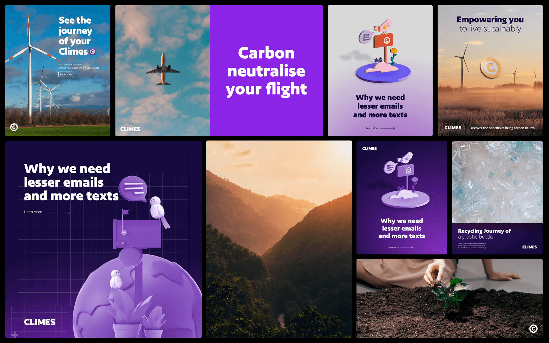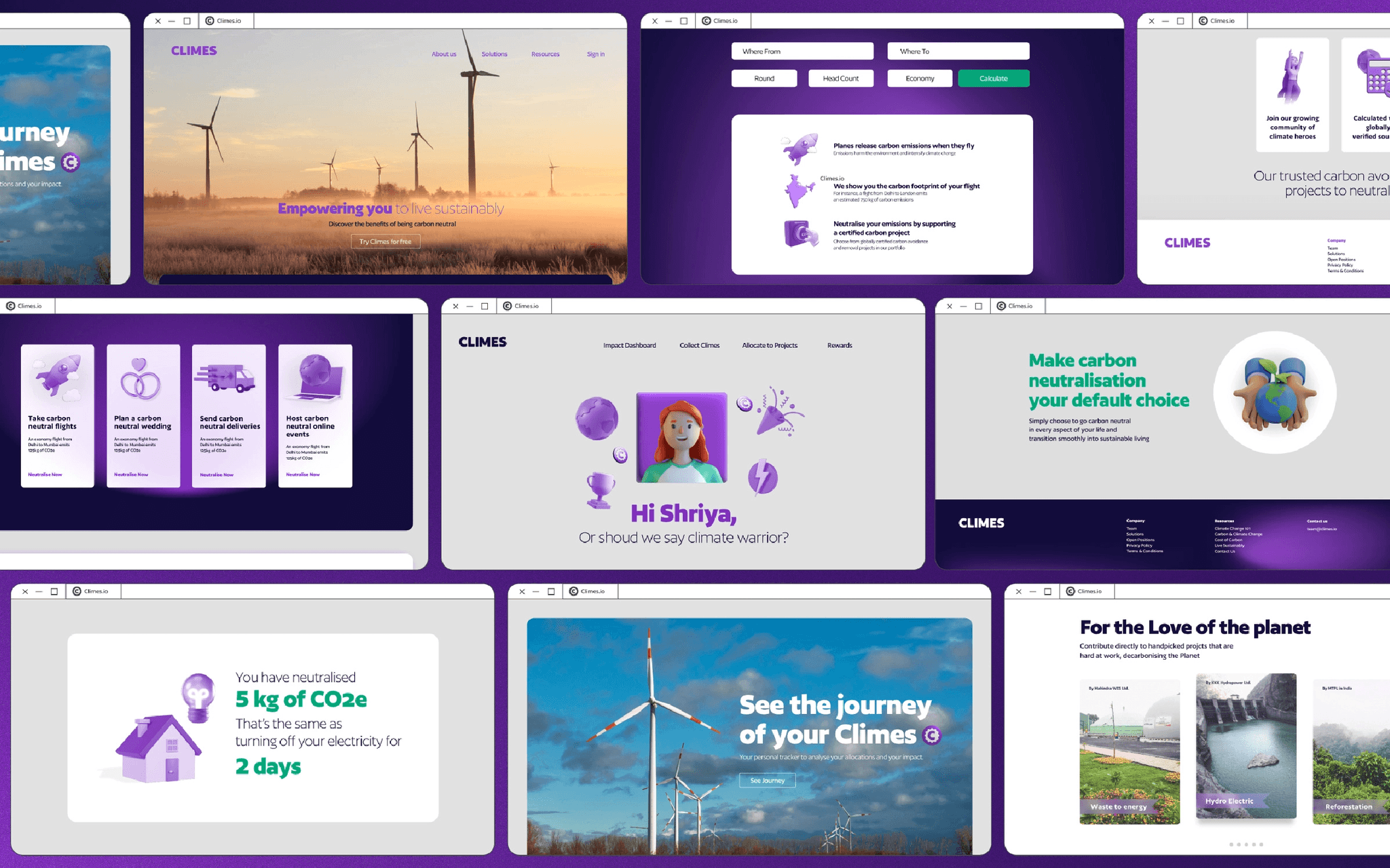 The kind folks at Climes came to us with an aim to create a graphical system that would bring in a consistent visual synergy throughout their existing products and services. Climes helps people take climate action in one click with tools that offset carbon footprint, thereby making climate action as normal as your morning cup of coffee. We played a part in their efforts by stepping into their world, exploring it, and then making their virtual footprint fresher and more appealing.