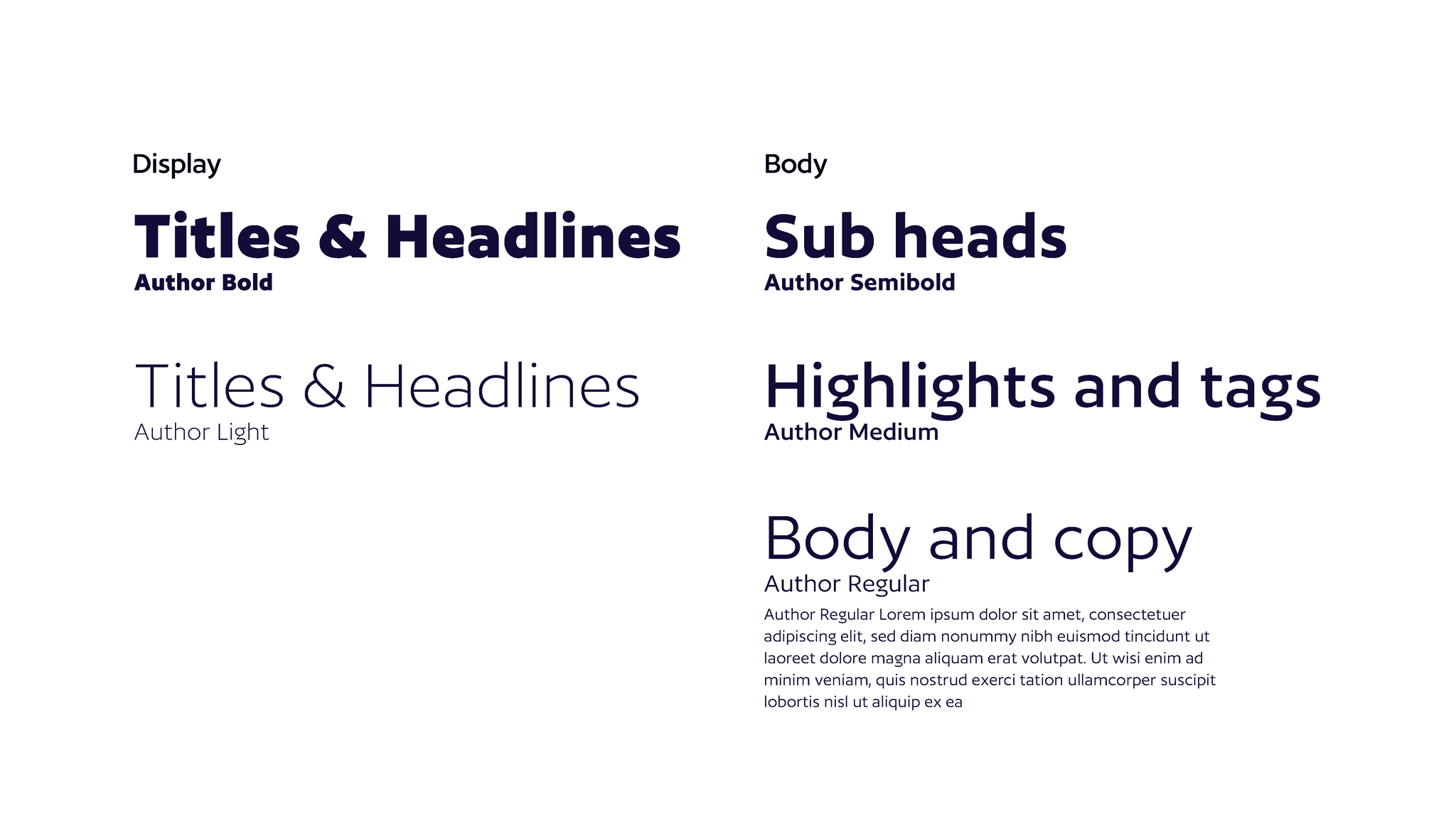 Author was used as the primary typeface due to it's powerful presence and legibility.