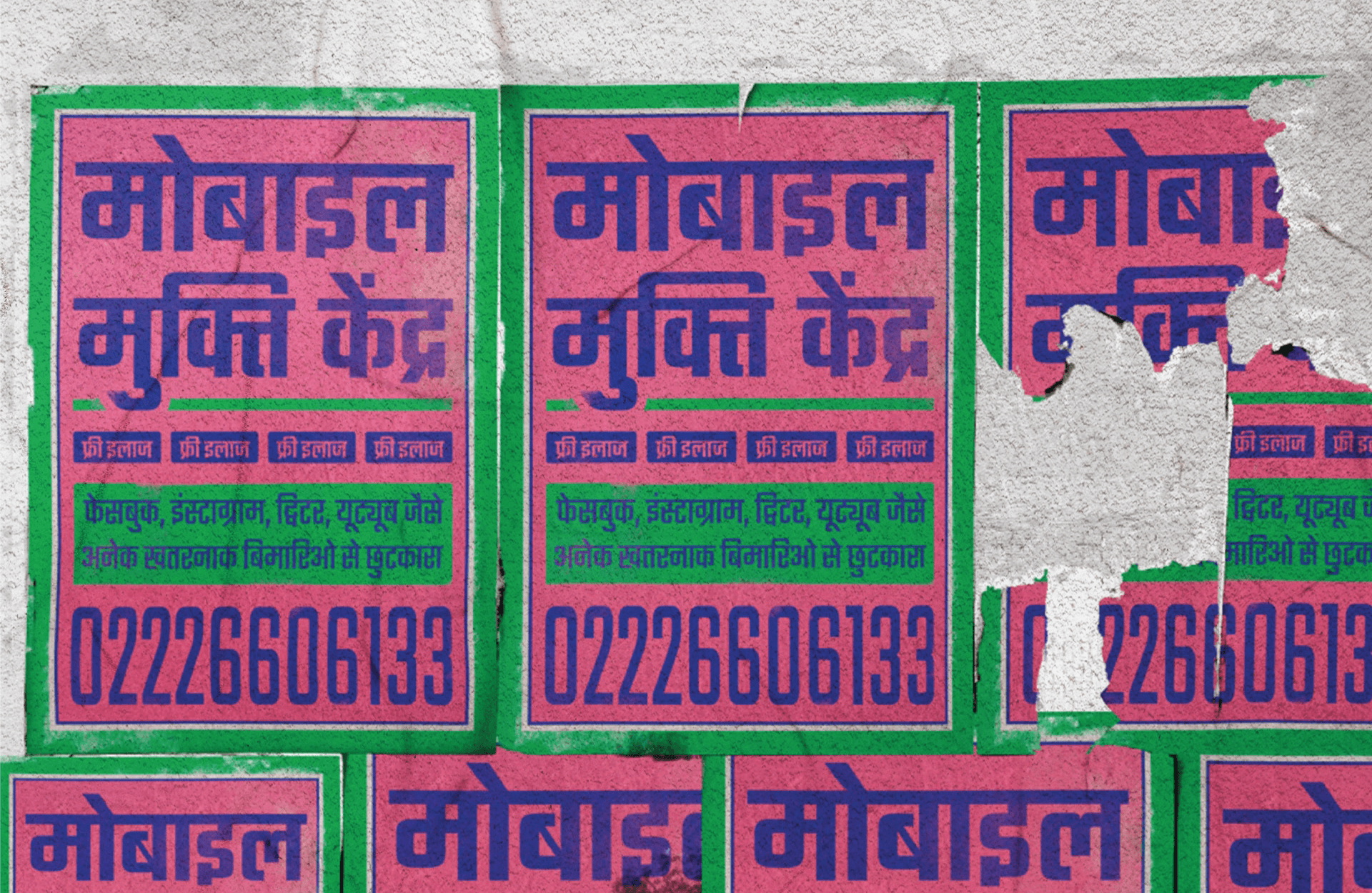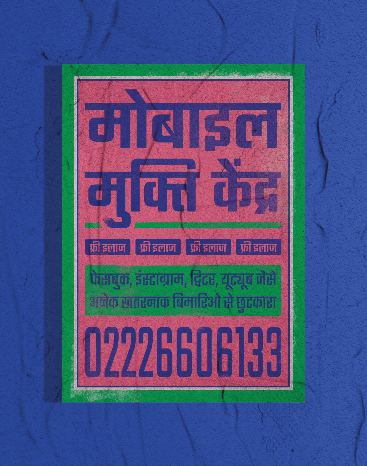 In such a future, a ‘Mobile Mukti Kendra’ might indeed be a reality. Inspired by the art in the often found, often overlooked ‘Daru Sodva’ posters, this is my slice at such a reality. A reality where social media addiction has become as big a problem as alcoholism and yet like our reality, is conveniently overlooked.